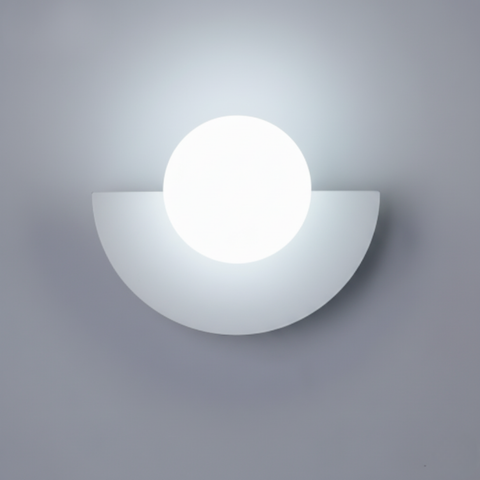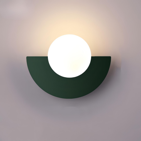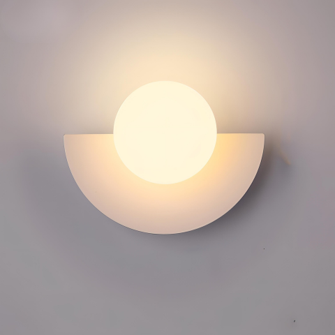 Deze wandlamp geeft je muren een grafische toets dankzij het halve cirkelontwerp en de centrale lichtbol. Hij verspreidt een zacht en gelijkmatig licht, perfect om een rustgevende sfeer te creëren in de woonkamer, slaapkamer of gang. Verkrijgbaar in verschillende kleuren, past hij gemakkelijk bij elke interieurstijl.